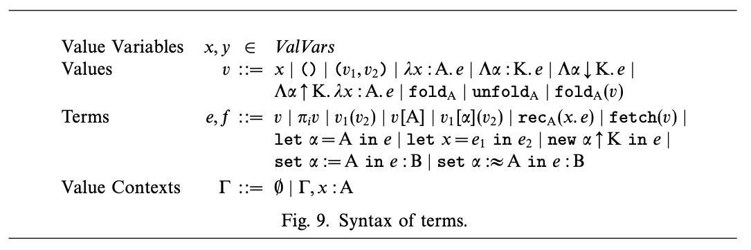 - typing rules come with an effect result (deciding a set of variables who are marked as non-writable)