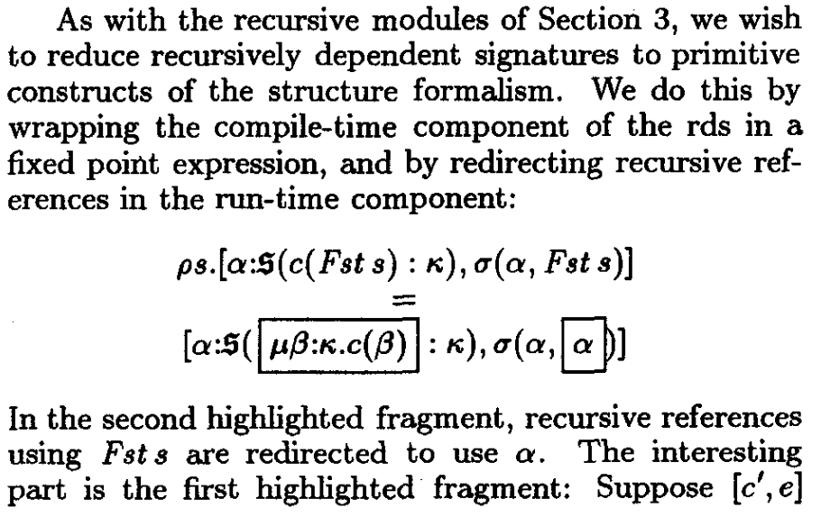 - Authors show: bisimilarity rule + Shao’s equation + contractiveness ⇒ iso-recursive type for recursive module encoding